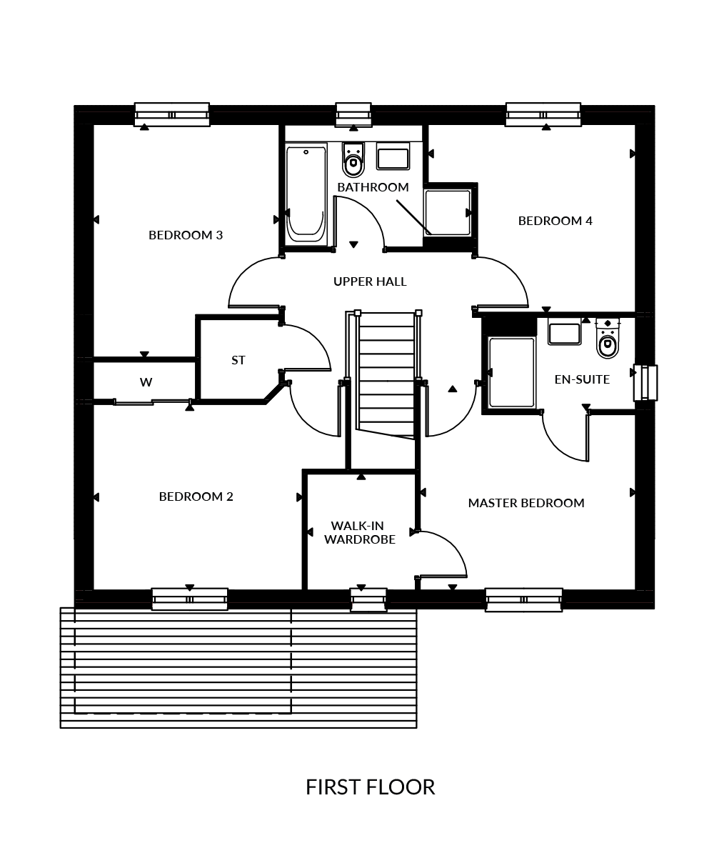 We provide you with the perfect blank canvas to personalise your new home with quality oak finish doors and bannisters and modern white satin skirtings, facings and walls.