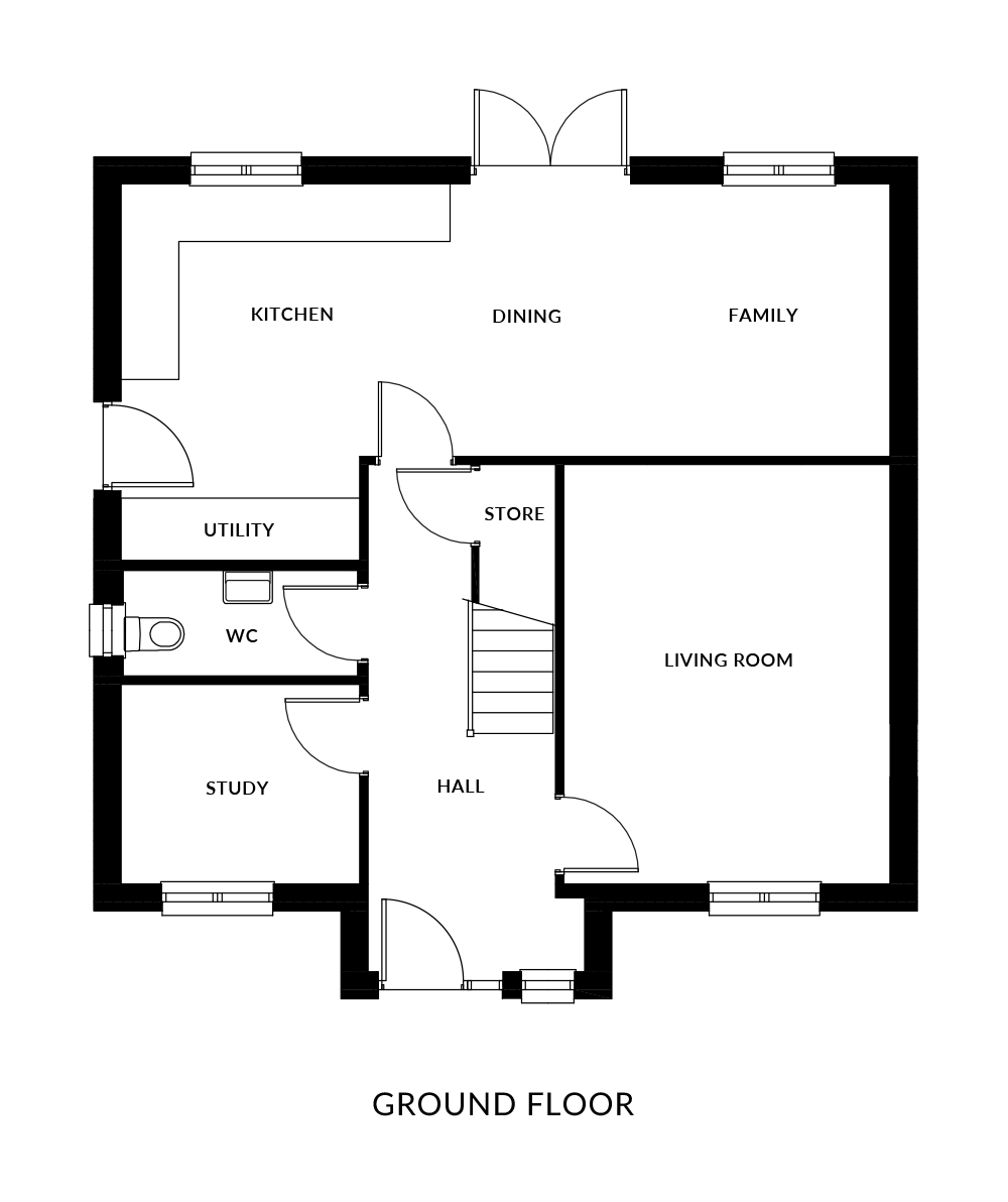 We provide you with the perfect blank canvas to personalise your new home with quality oak finish doors and bannisters and modern white satin skirtings, facings and walls.