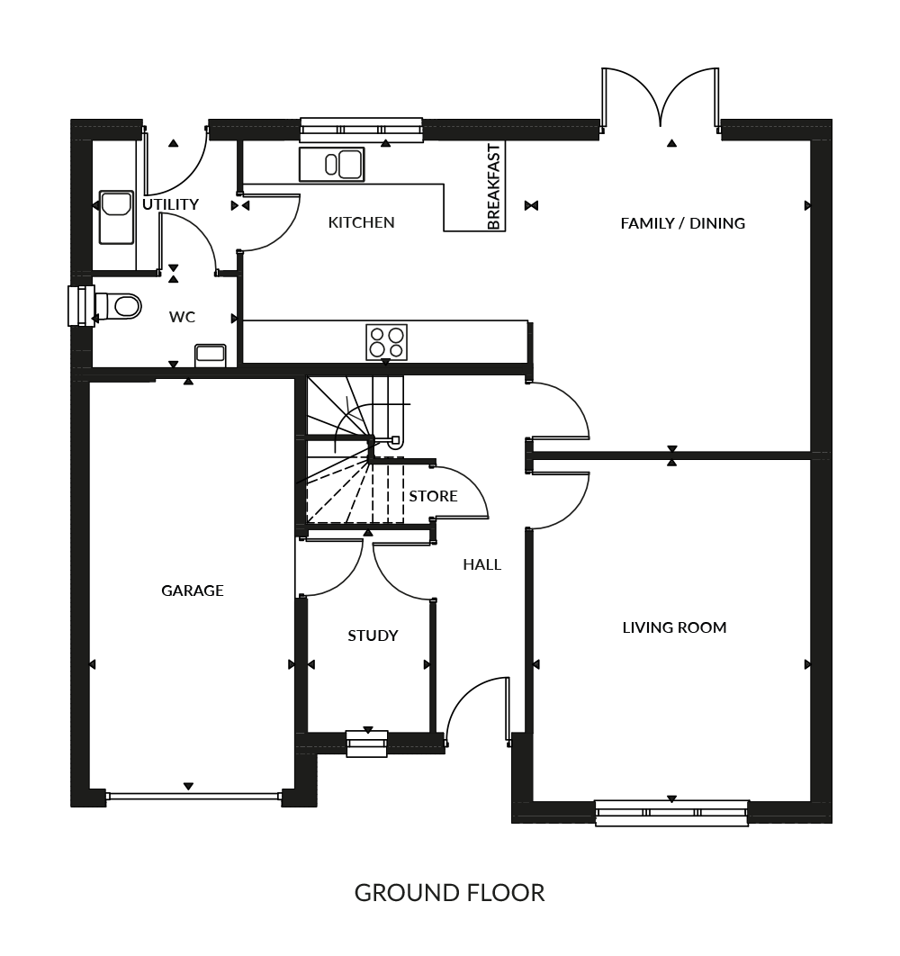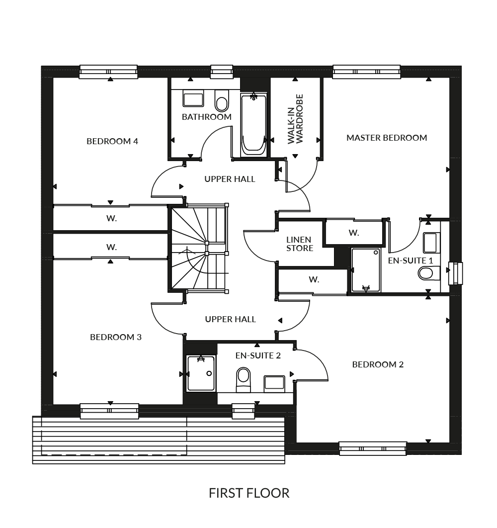 We provide you with the perfect blank canvas to personalise your new home with quality oak finish doors and bannisters and modern white satin skirtings, facings and walls.
