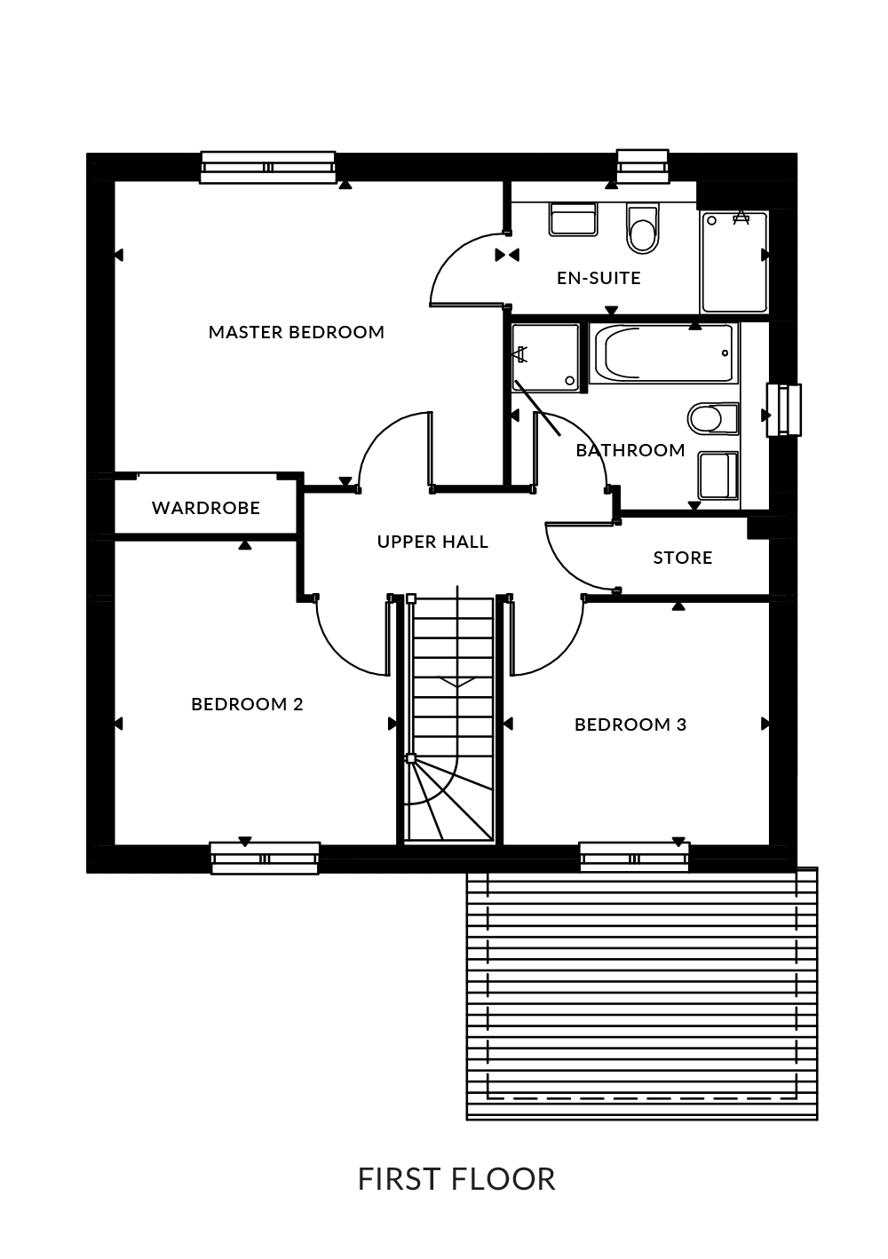 We provide you with the perfect blank canvas to personalise your new home with quality oak finish doors and bannisters and modern white satin skirtings, facings and walls.