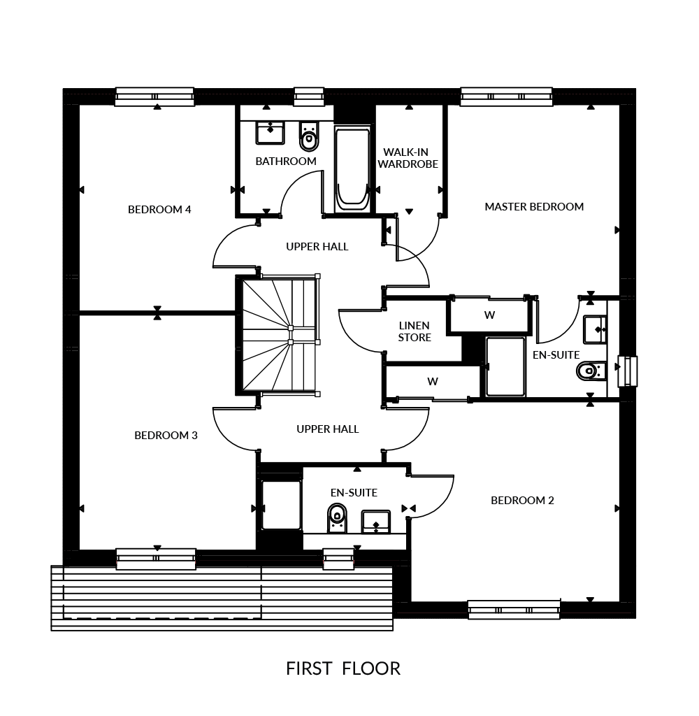 We provide you with the perfect blank canvas to personalise your new home with quality oak finish doors and bannisters and modern white satin skirtings, facings and walls.