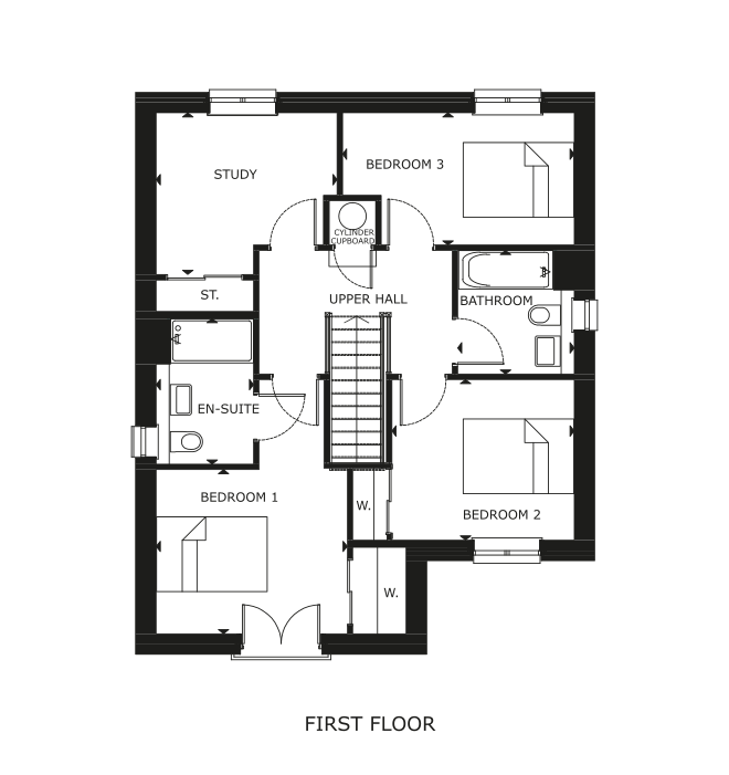 We provide you with the perfect blank canvas to personalise your new home with quality oak finish doors and bannisters and modern white satin skirtings, facings and walls.