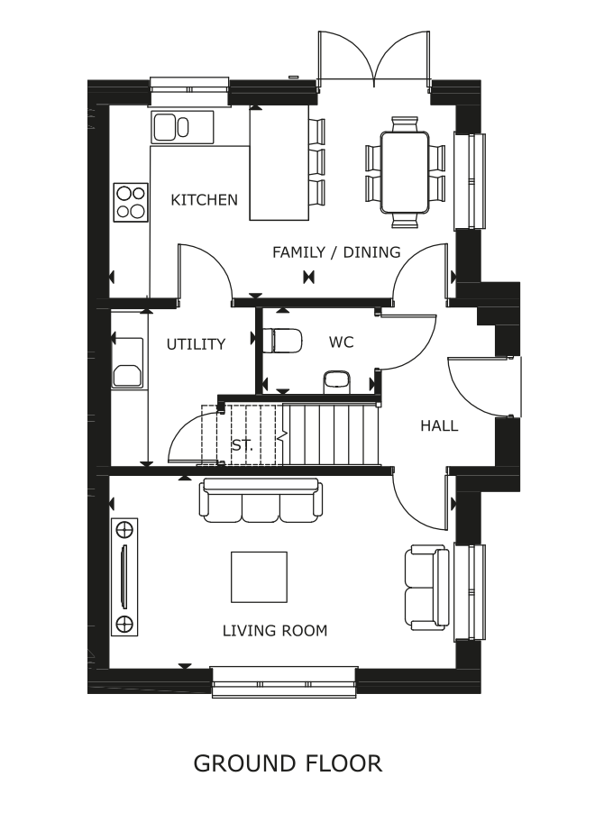 This 3-bedroom home features a luxurious kitchen with breakfast bar, dining space and garden access, plus a convenient utility room and wc. The separate living room benefits from dual-aspect windows.